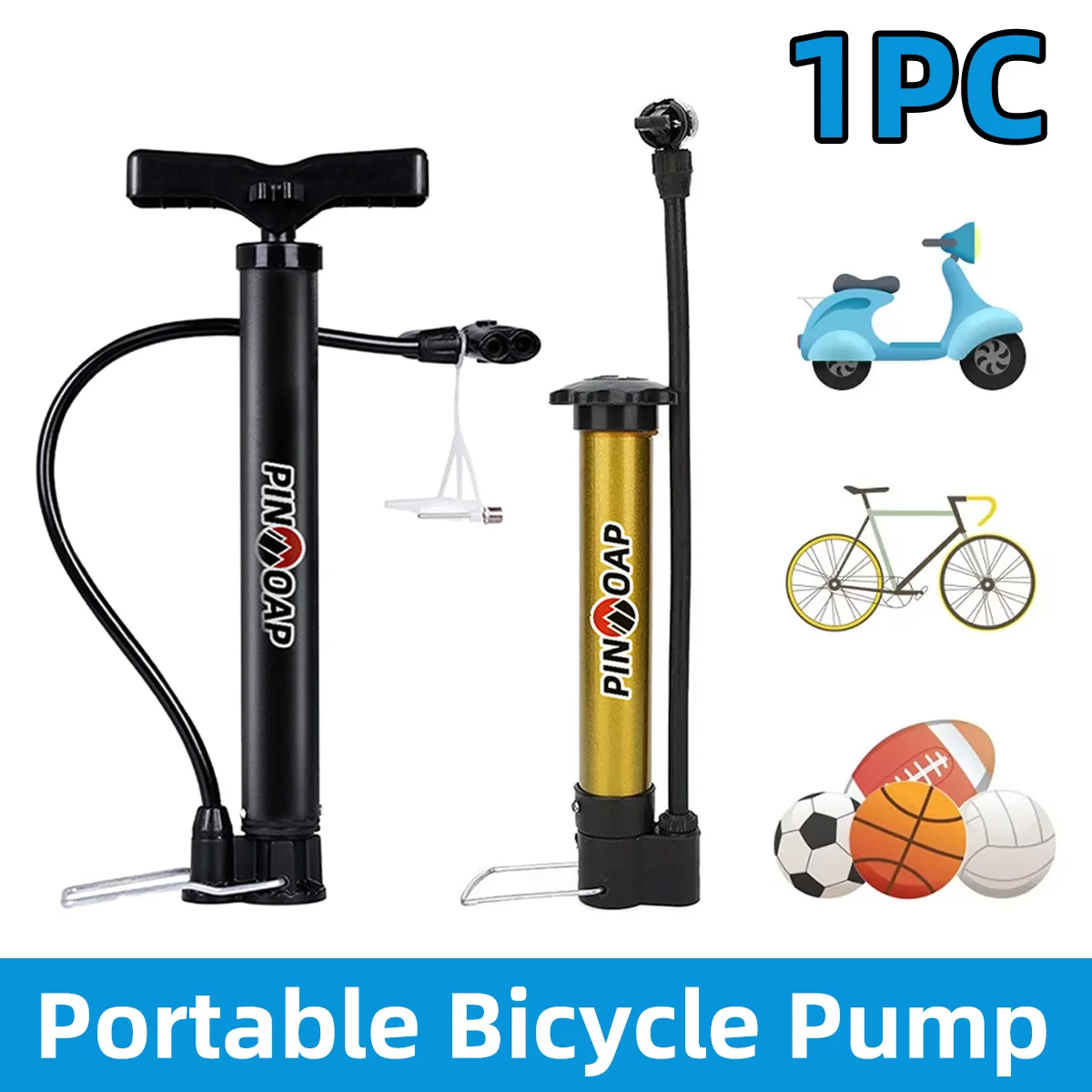 1PC Bicycle Inflator Pump Portable Pedal Inflator Pump T-Shaped Handle Highway Mountain Bike Tire In...