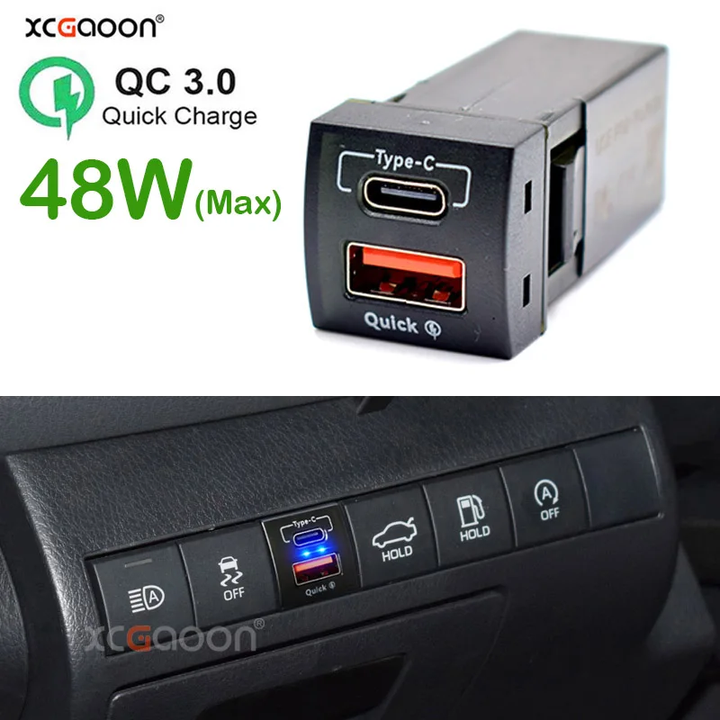 Type-C & USB QC3.0 48W (max) CellPhone Car Quick Charger for Toyota Land Cruiser Prado 150 Serie...