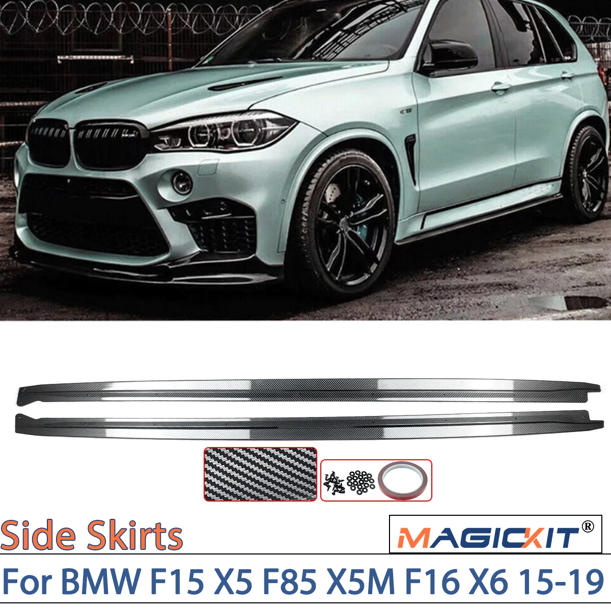 MAGICKIT 2pcs Gloss Black/Carbon fiber MP Style Side Skirt Extension For BMW F15 X5 F85 X5M F16 X6 F...