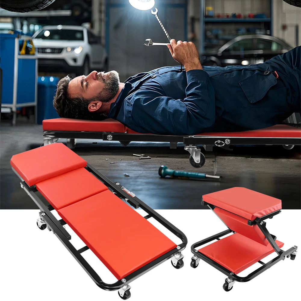 36Inch Folding Car Creeper Seat Work Bench Chair Roller Wheels Auto Repair Bed Maintenance Mechanic ...