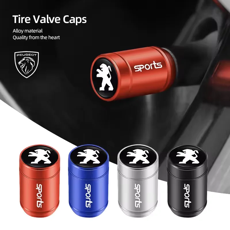 4Pcs Car Emblem Tire Valves Caps Covers Auto Accessories For Peugeo...