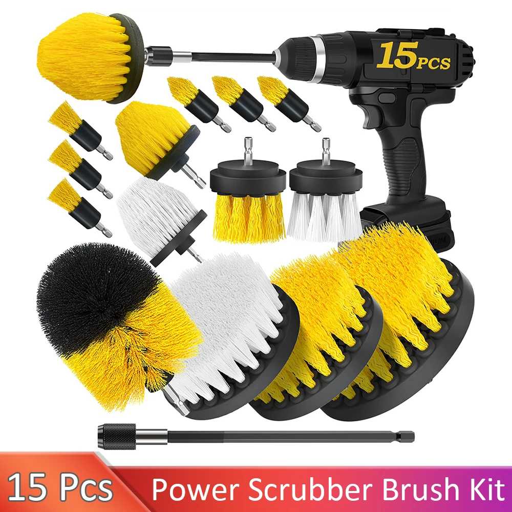 1/15 PcsDrill Brush Attachments Set Power Scrubber Brush with Exten...