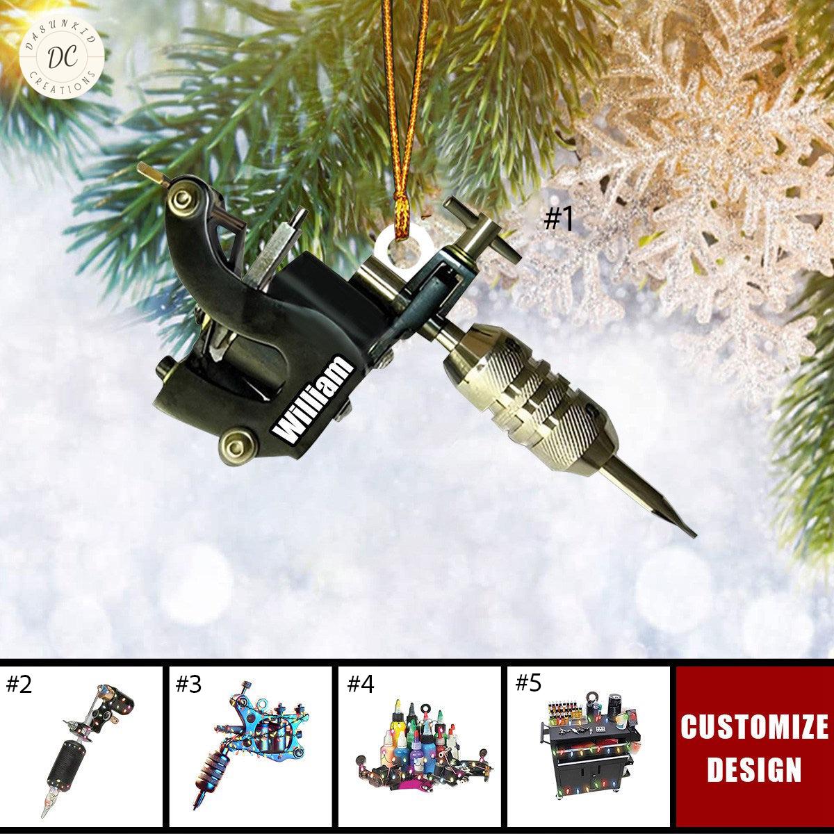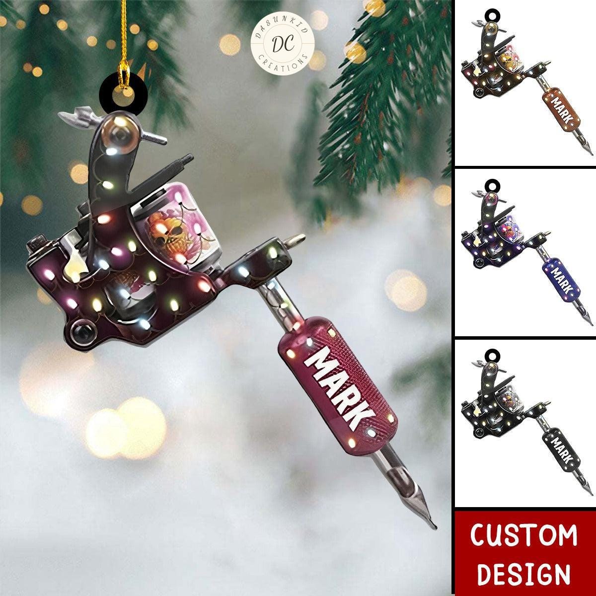 Custom Tattoo Machine Ornament, Personalized Tattoo Artist Christmas Gift Ornaments, Tattoo Gun Orna...