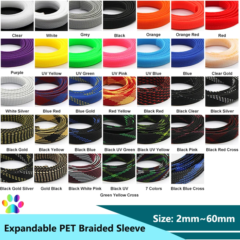 1m PET Braid Sleeve 2/4/6/8/10/12/14/16/20/25/30/35/40/50/60mm High Density Wire Wrap Protection Cas...