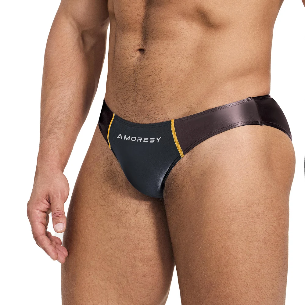 Amoresy Low Waist Gossy Breathable Sports Ice silk Color Matching Underwear Underpants Briefs