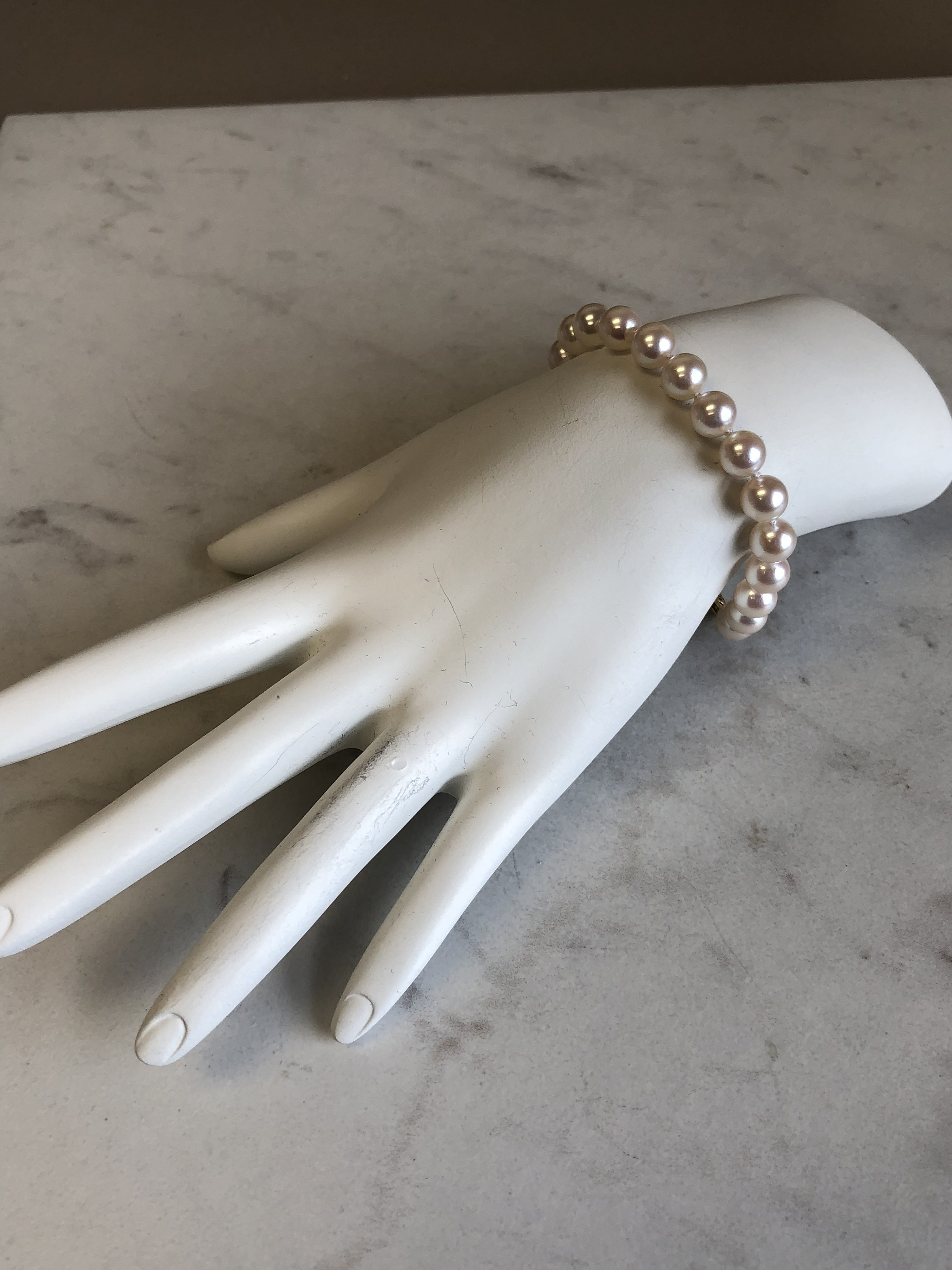 "A Beautiful and Classic 14kt Yellow Gold Cultured Pearl Bracelet in 7\" length consisting...