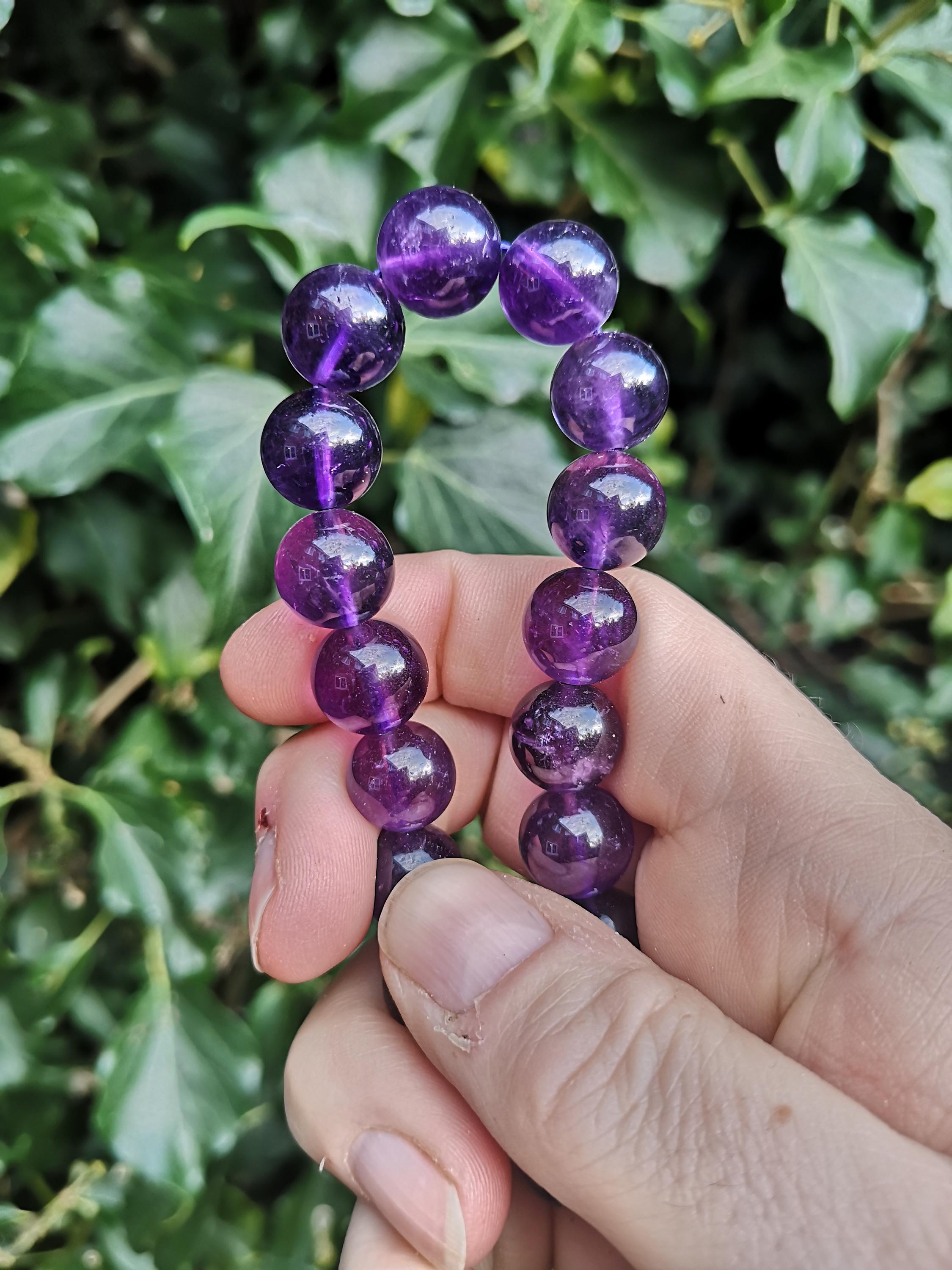 Amethyst Bead Bracelet With Rainbows -Amethyst Crystal Large 14mm B...