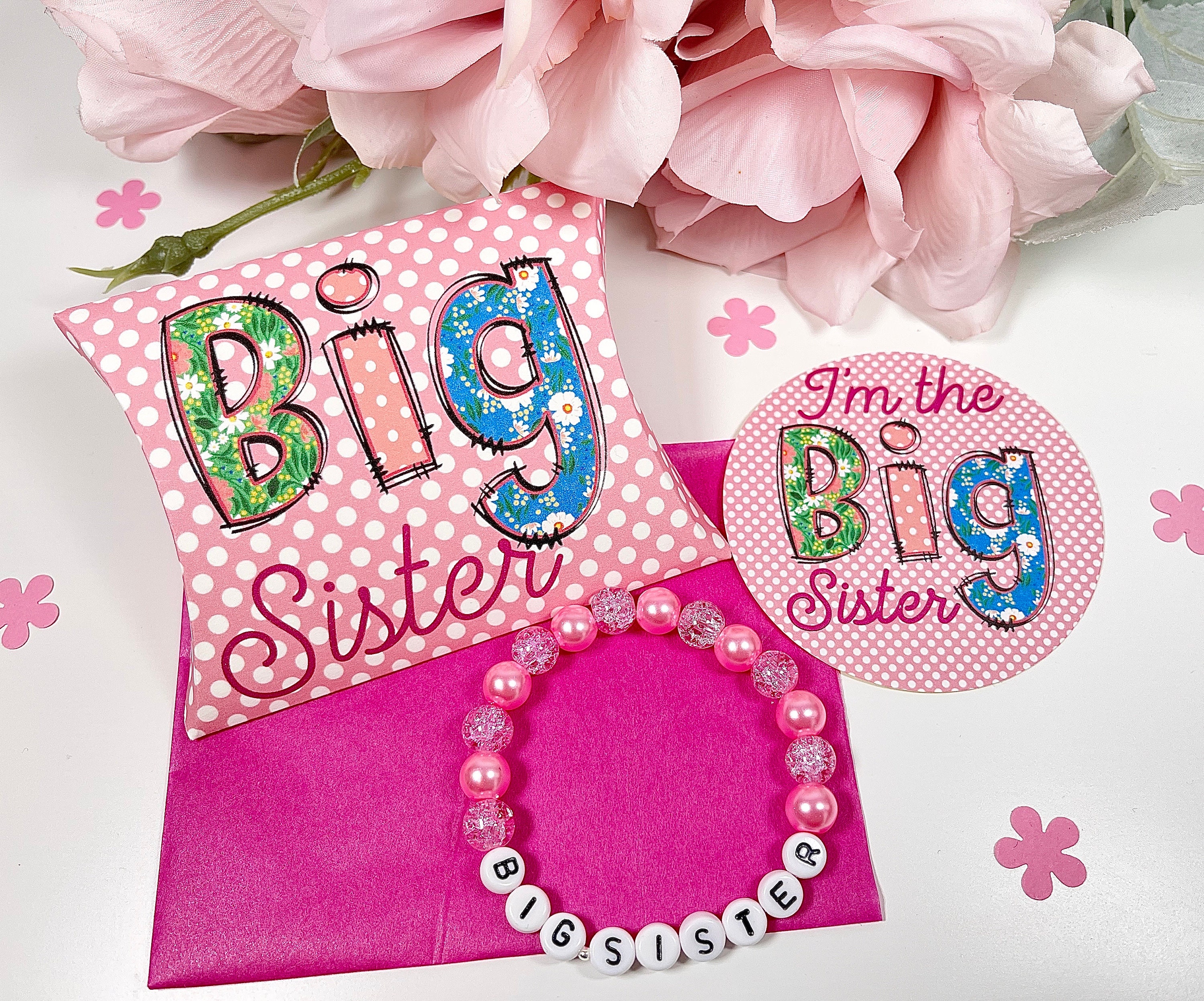 Big Sister Bracelet with gift box and sticker, big sister gift, big...