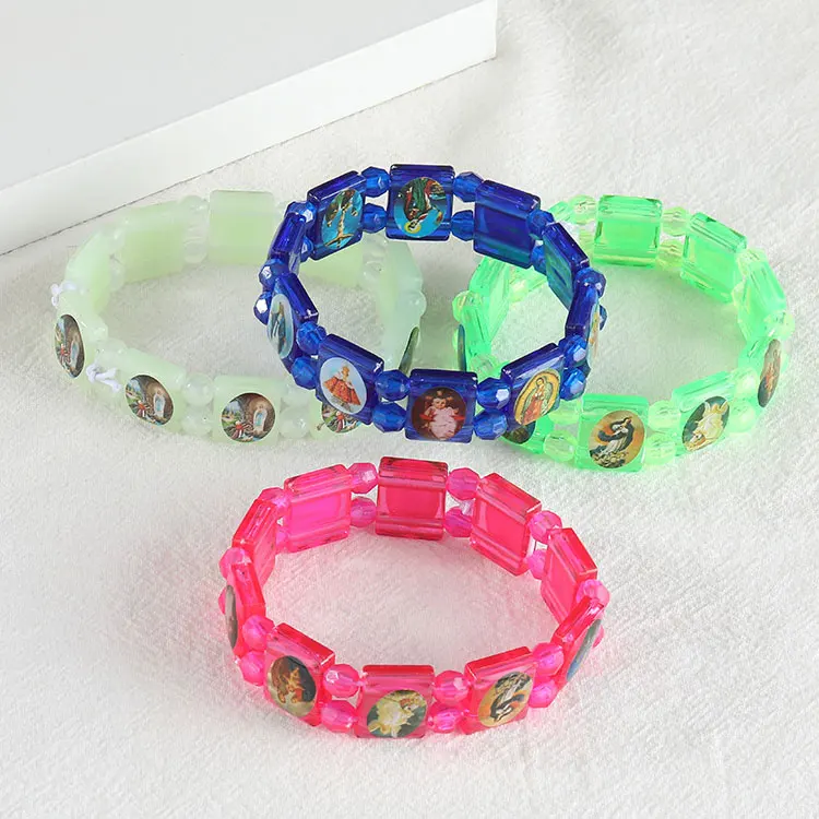 Religious Bracelets Jewelry PVC Square Charms Elastic Beaded Bracel...