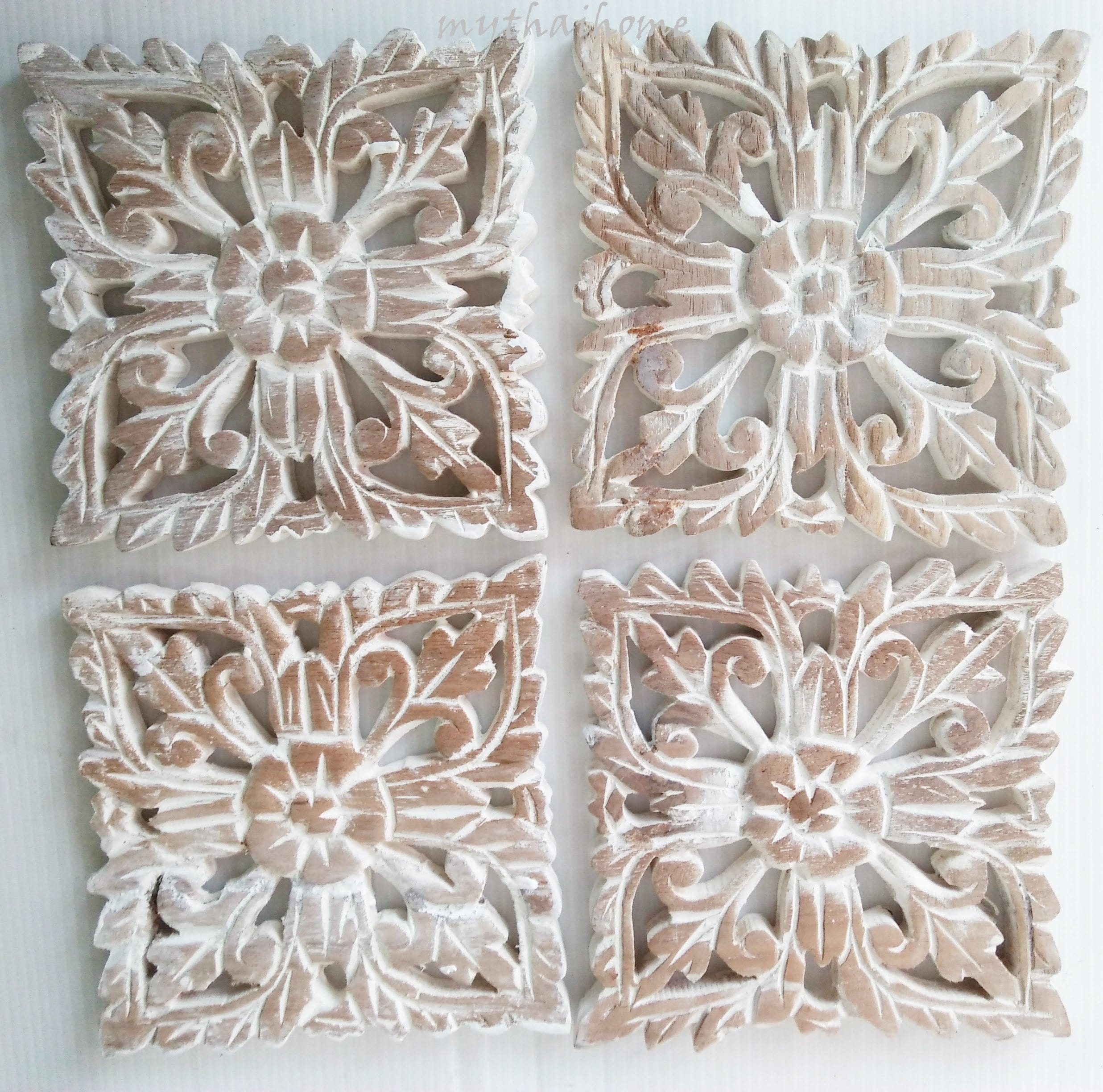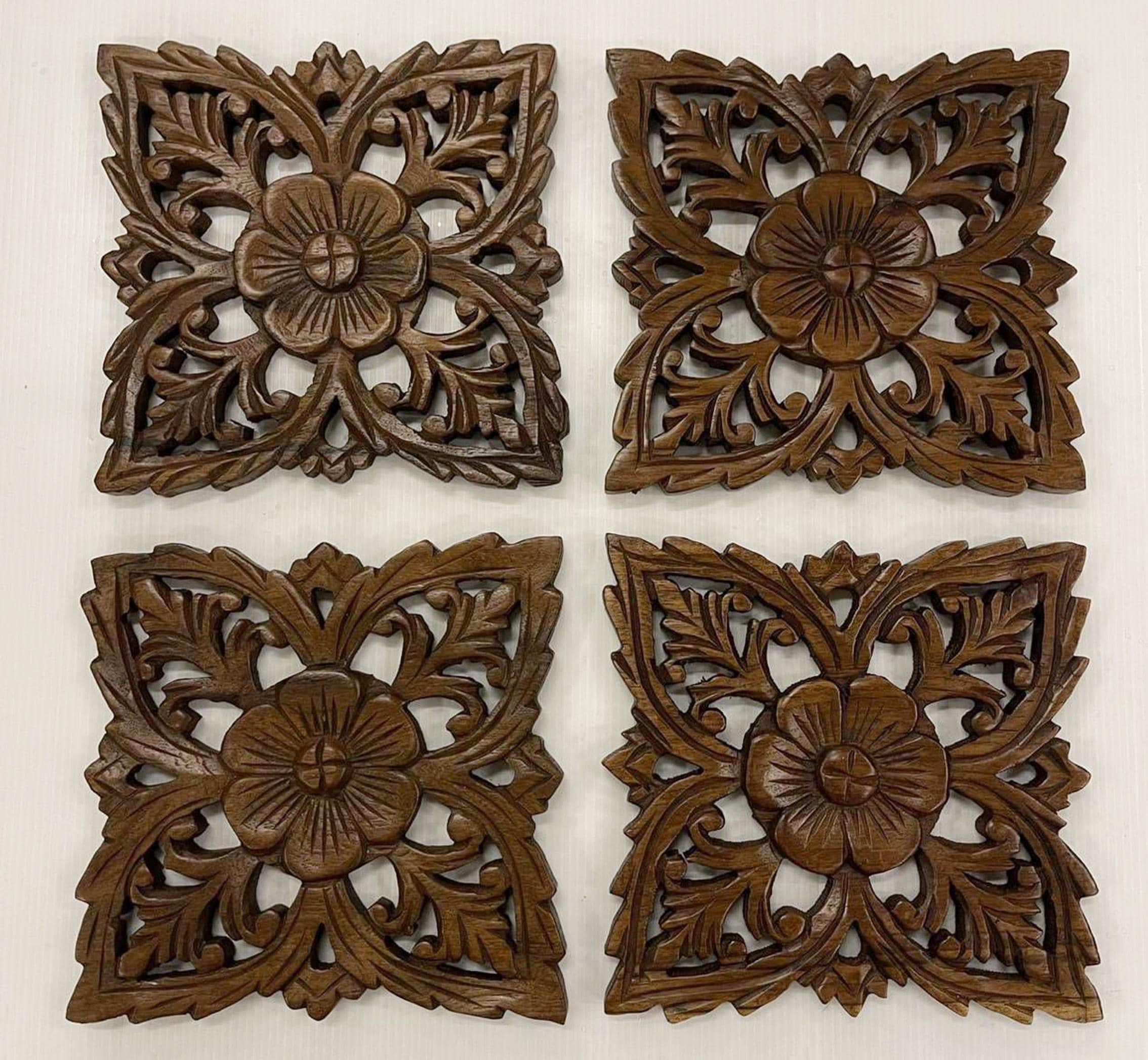 Wood Carved Panels Set of 4, Mandala Wall Art Hanging, Mounted wood...