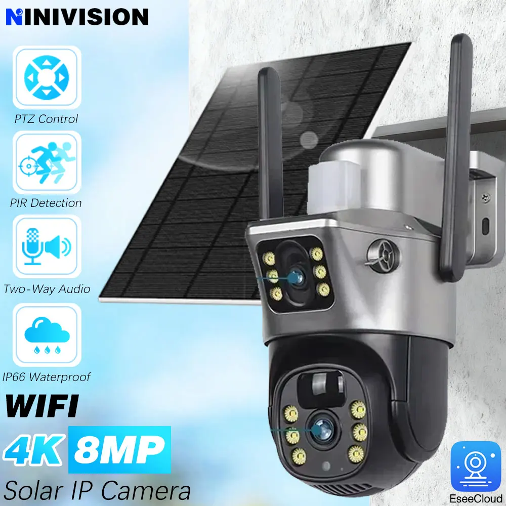 4K 8MP 5G&2.4GHZ WiFi Solar Camera Dual Lens Dual Screen CCTV Camaras PIR Detection EseeCloud Su...