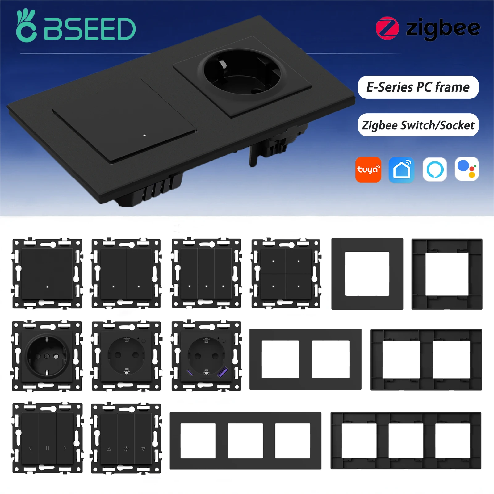 BSEED Zigbee Click Light Switch Part 1/2/3/4Gang 2Way Switch Function DIY Part EU Smart Socket Outle...
