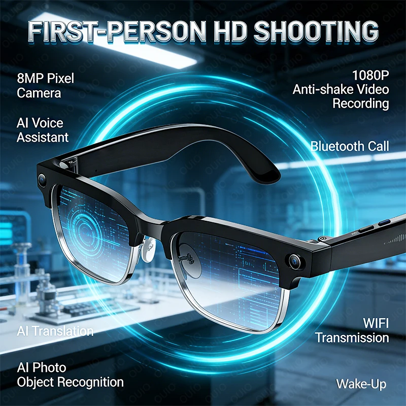 2026 New 8MP Pixel Camera Smart Glasses 4K Video Music 4GB Memory BT Call AI Voice Wake-Up Translati...