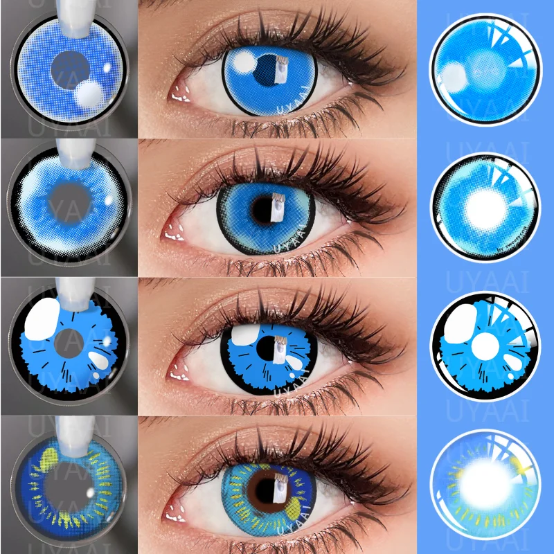 UYAAI 1Pair Cosplay Color Contact Lenses Anime Accessories Blue Multicolored Lenses Pupilentes Hallo...