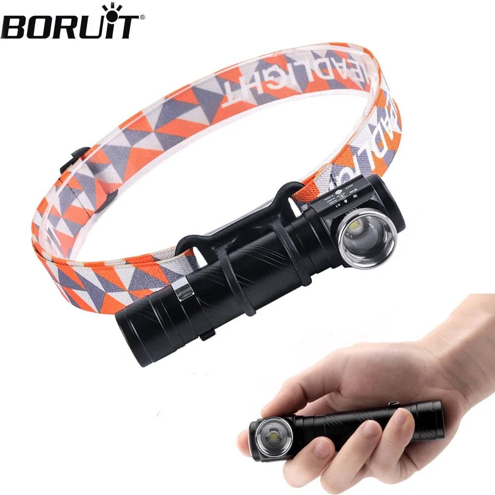 BORUIT D20 Zoomable Mini Headlamp 1000LM LED Headlight USB C Charger 18650 Battery Head Torch Campin...