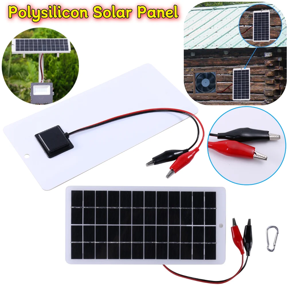 10W Solar Battery Charger with Carabiner 12V Cells Power Bank Polysilicon Solar Charger Plate Portab...