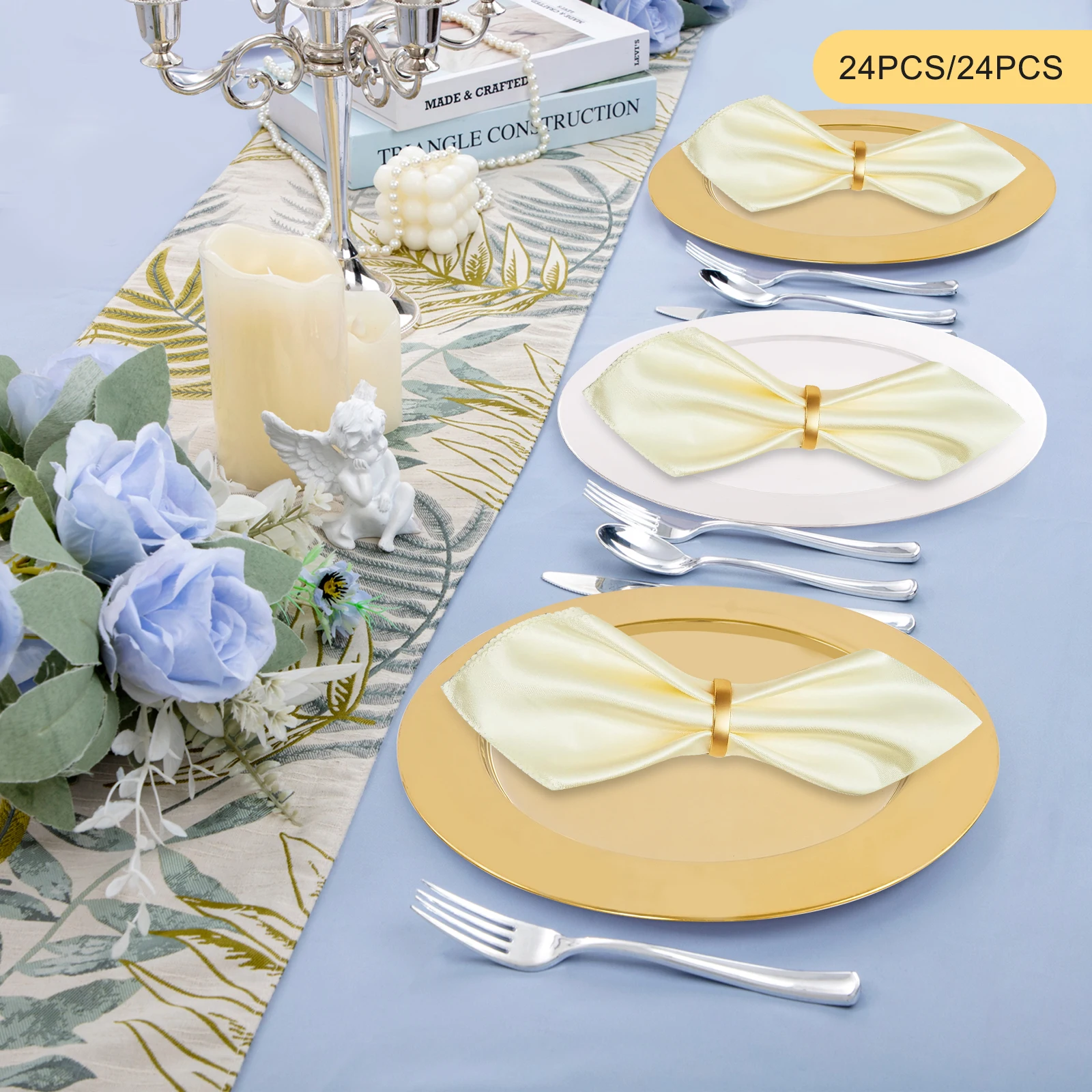 410 Stainless Steel Charger Plates Set of 24 Chargers for Dinner Pl...