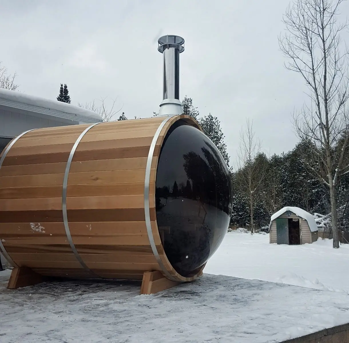 Outdoor Barrel Sauna Cedar Wood Steam Sauna Room with Panoramic Win...