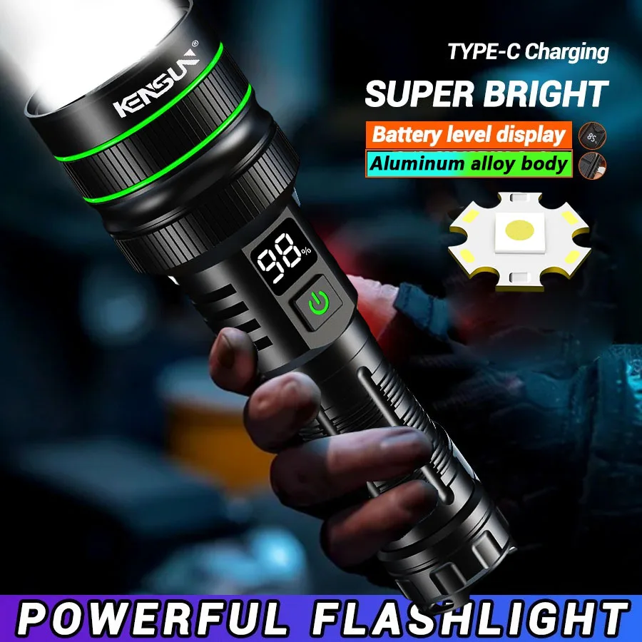 Most Powerful Long Shot LED Flashlight Zoomable Camping Torch Built...