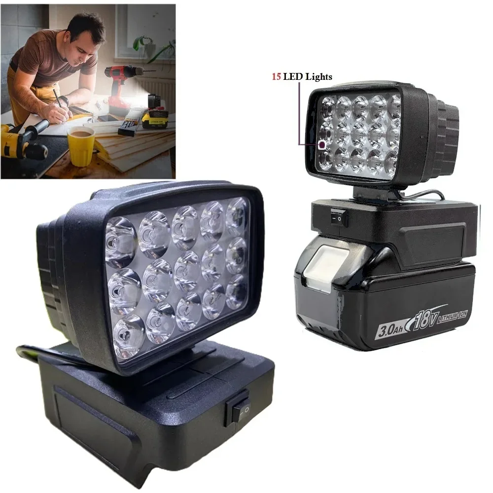 Handheld Li-ion Battery LED Lamp With USB Charger Switch for Makita 18V Lithium Tool Emergency Flood...