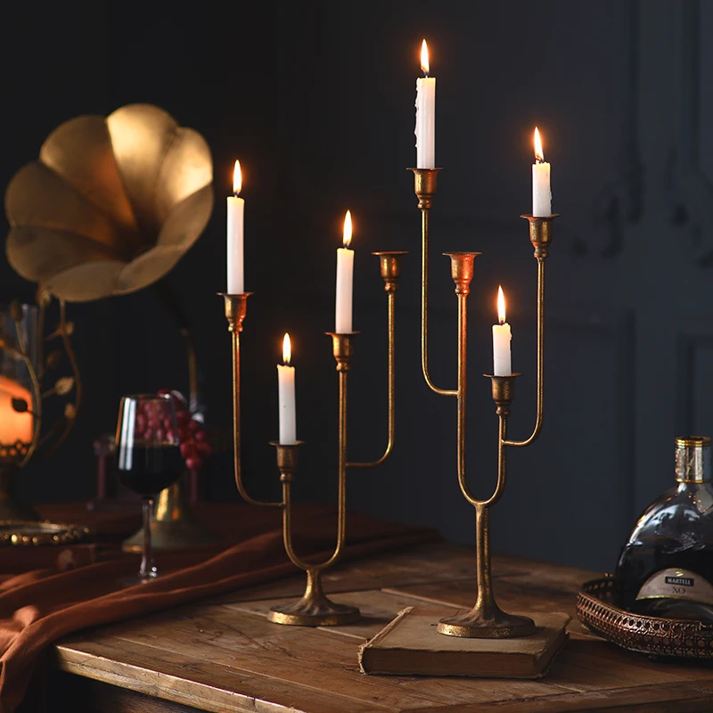 Simple Dining Table Candelabra Hollow Iron Wind Lamp Candelabra Orn...