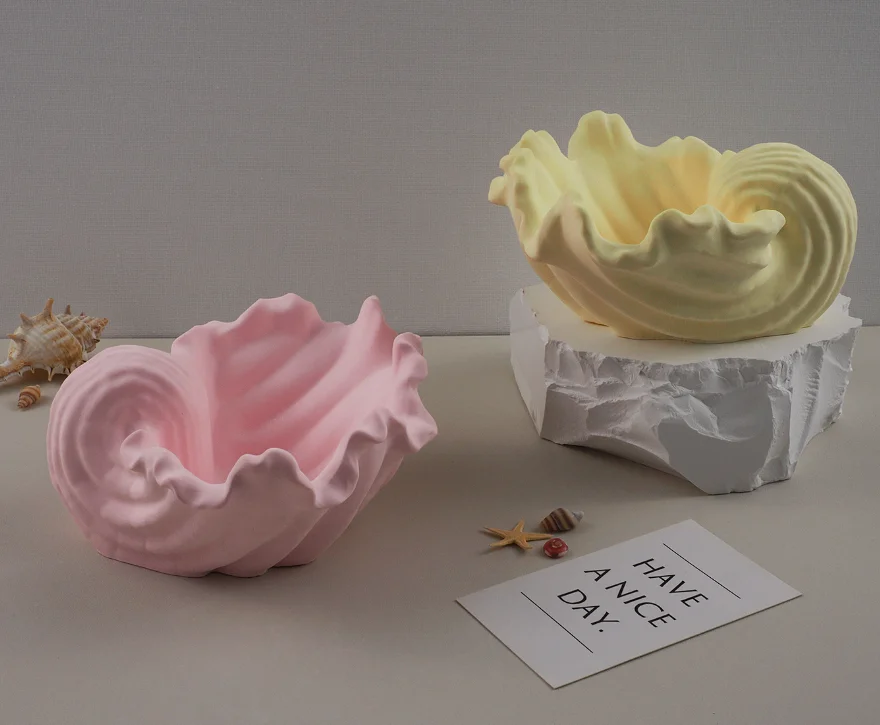 DIY Gypsum Cement Aromatherapy Candle Cup Plate Conch Shell Ocean S...