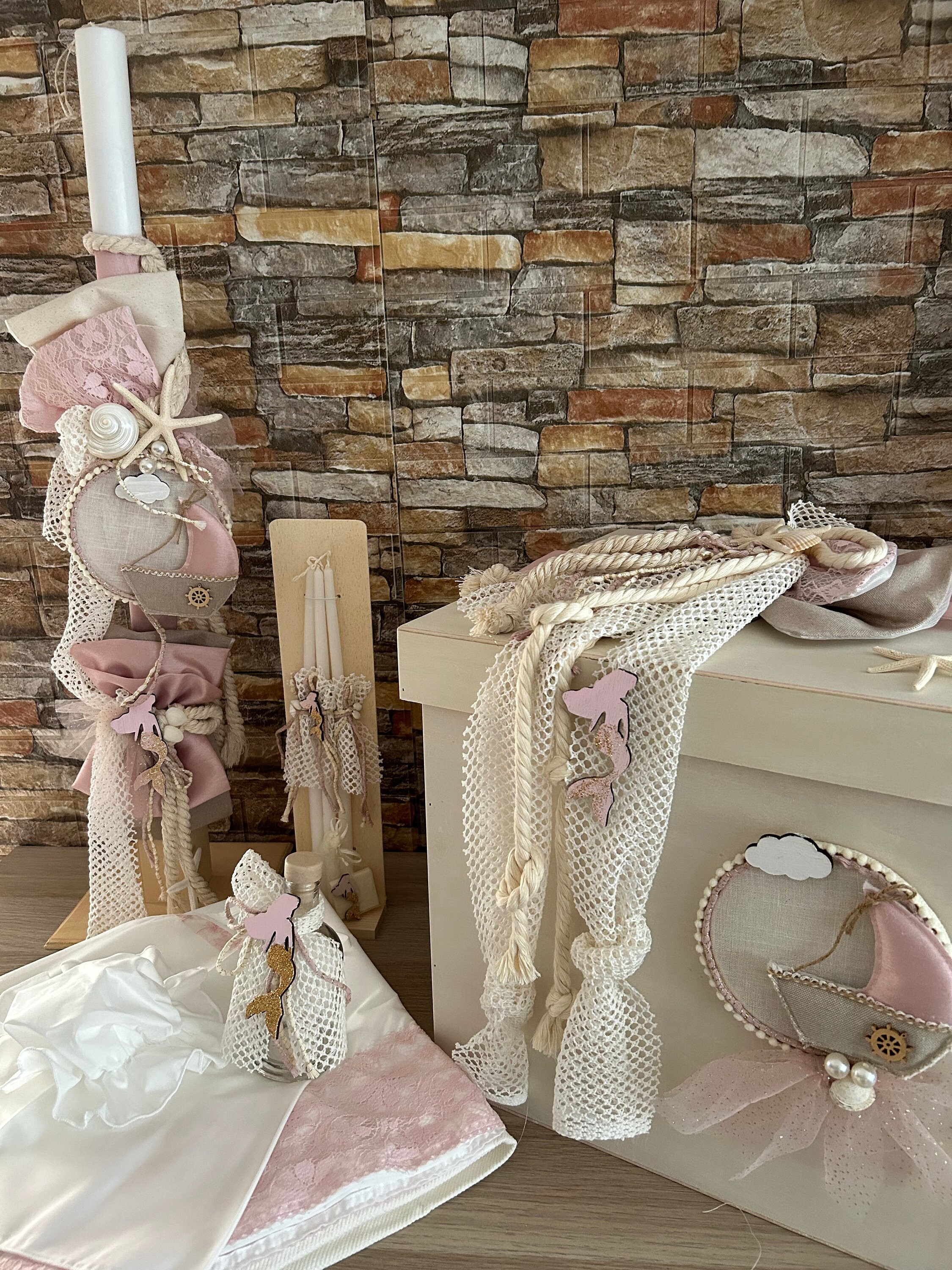 Complete set baby girl captain Boat baptism set Candle Box stool To...