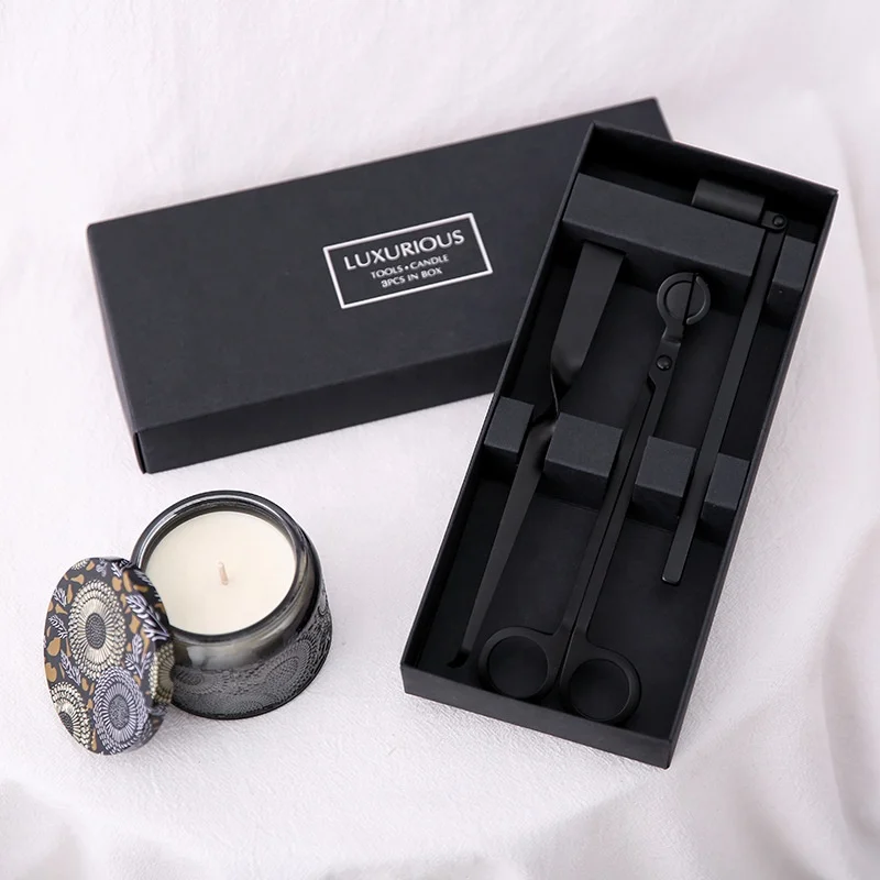 Custom Logo Stainless Steel Wick Trimmer Black Candle Care Set with...