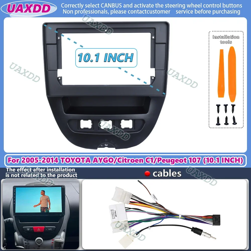For 2005-2014 TOYOTA AYGO Citroen C1 Peugeot 107 10.1INCH 2 Din Car Android frame fascia cable video...