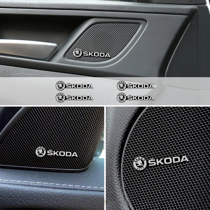 4pcs 3D aluminum speaker stereo speaker badge emblem Sticker For Skoda Fabia 2 3 Karoq Kodiaq Octavi...