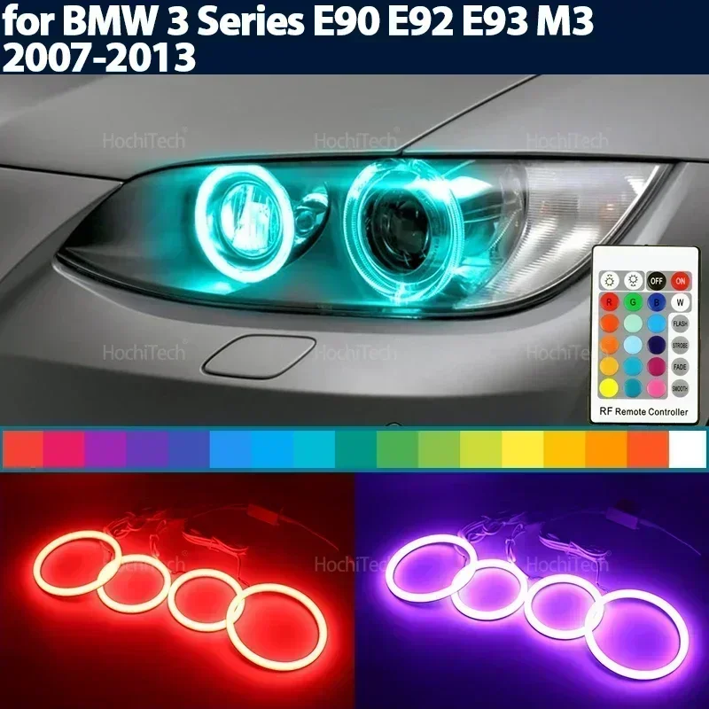 RGB Colorful Cotton Rings with Remote Control for BMW 3 Series E90 E92 E93 M3 2007-2013 Headlight LE...