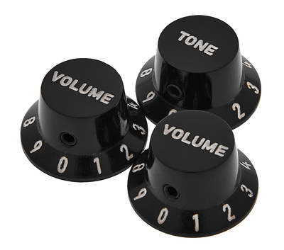 Harley Benton Parts ST Poti Knob Set Ebony; 3er Set ST Style Poti Knob; 2x Volume, 1x Tone; big lett...
