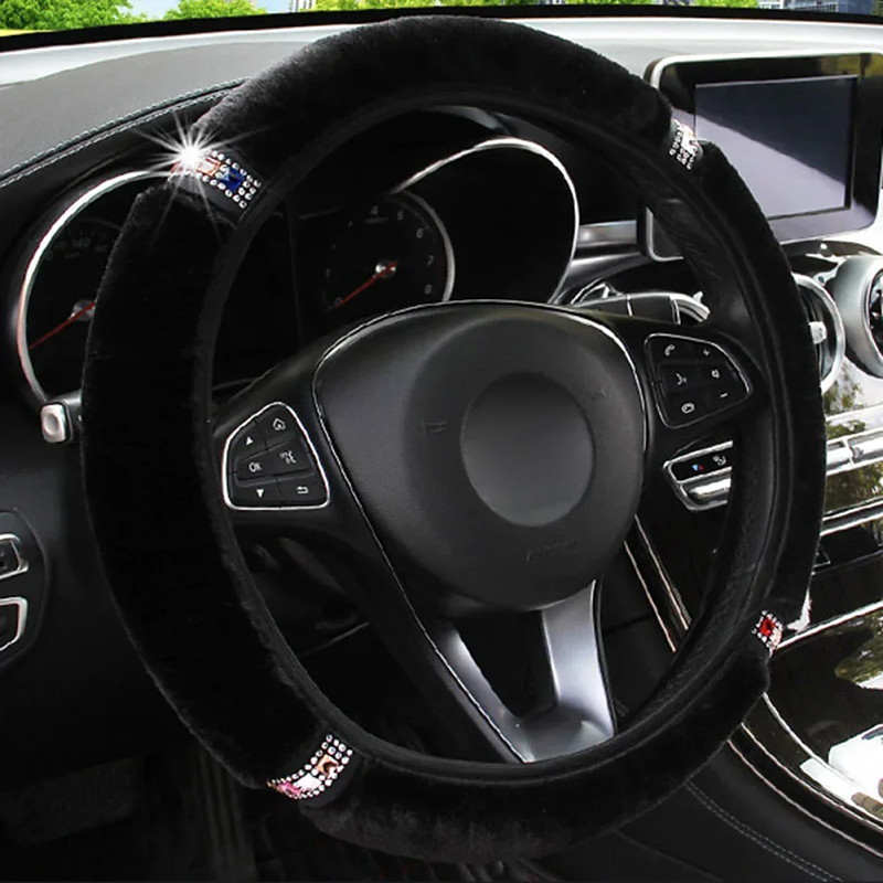 Winter Fashion Diamond Car Steering Wheel Cover Universal 37-38cm D...