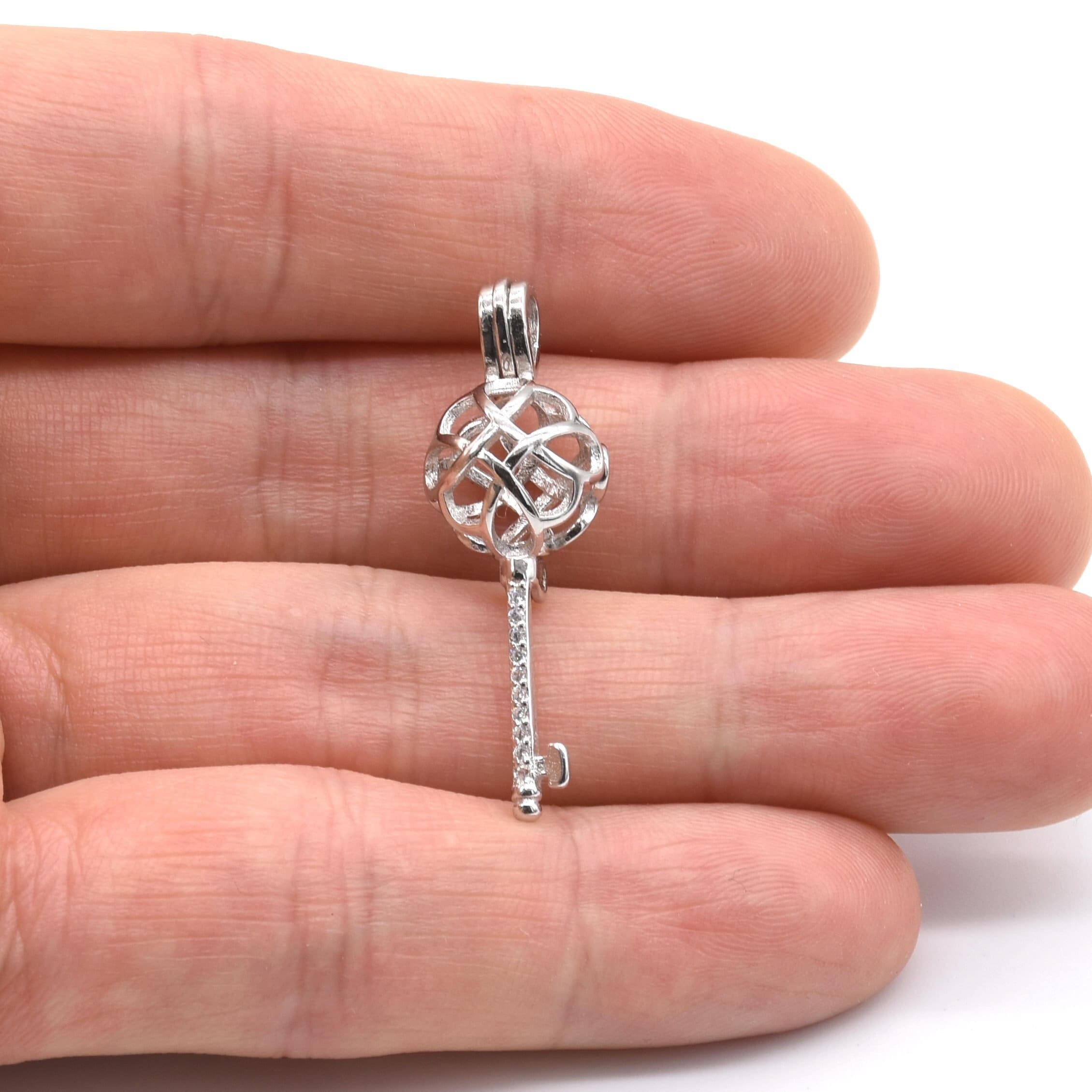 Eternity knot charm, Sterling 925 silver key pearl cage pendant, na...