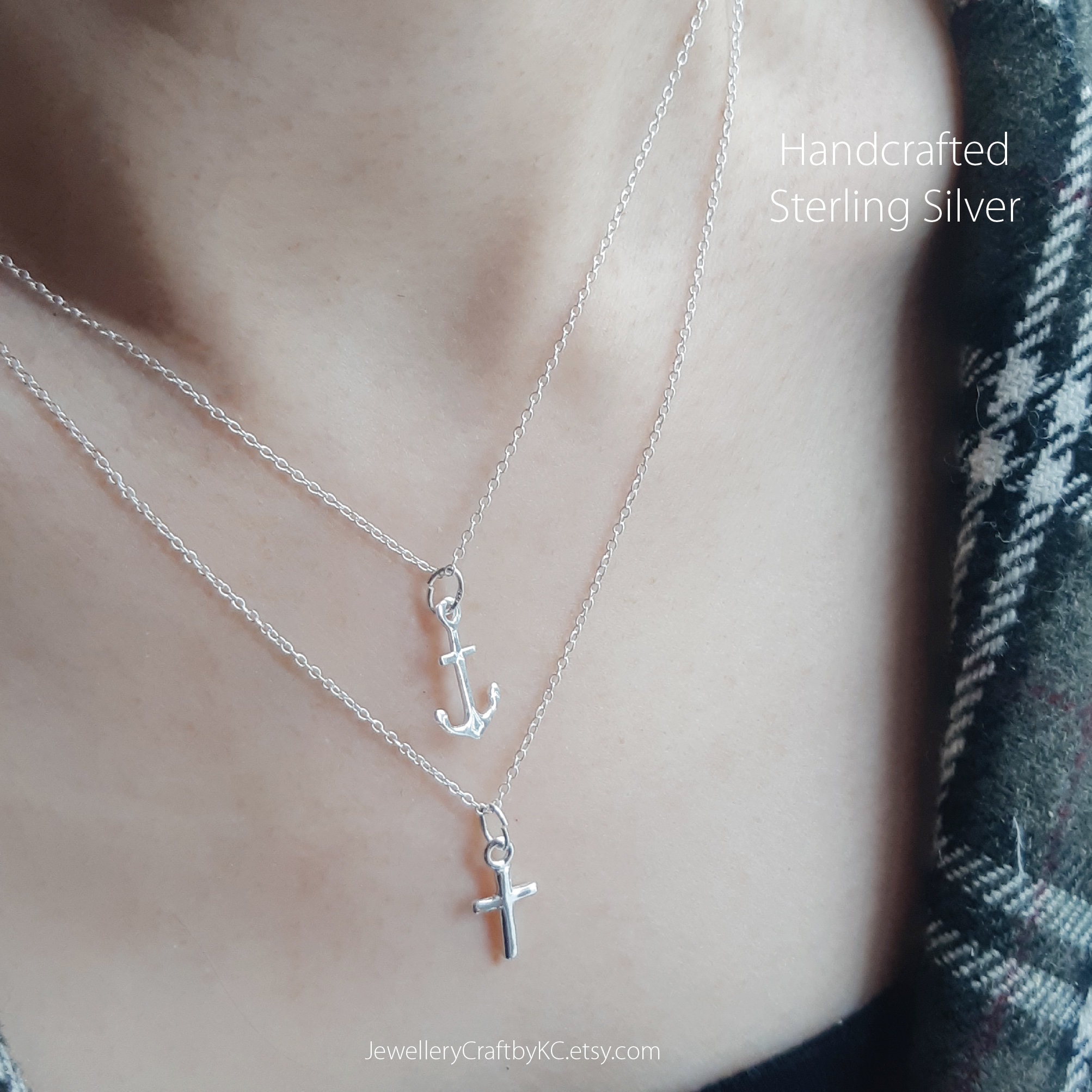 Classic Cross Charm and Necklace 100% Solid 925 Sterling Silver, Ha...
