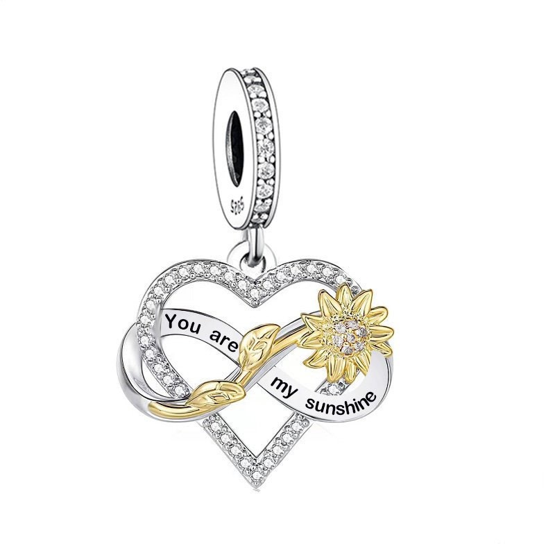 You are My Sunshine Sunflower Endless Love Heart Charm, Fit Pandora...