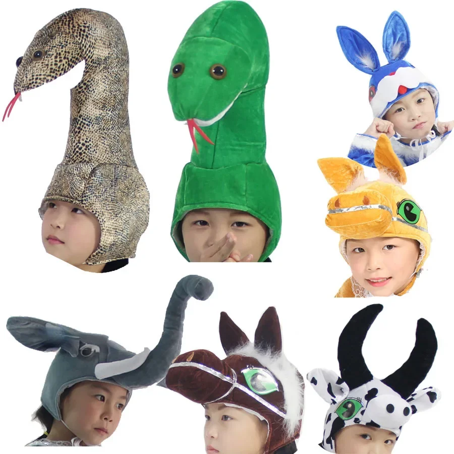 Novelty Children Kids Aldult Farm Animal Costume Hat Theme Party Dress Up Plush Rooster Horse Sheep ...