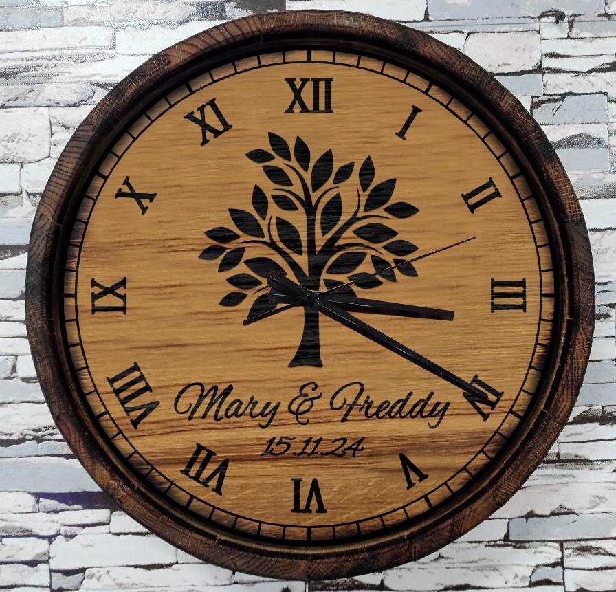 Personalised Whiskey-Bourbon Barrel Clock, Custom Oak Barrel Head, ...