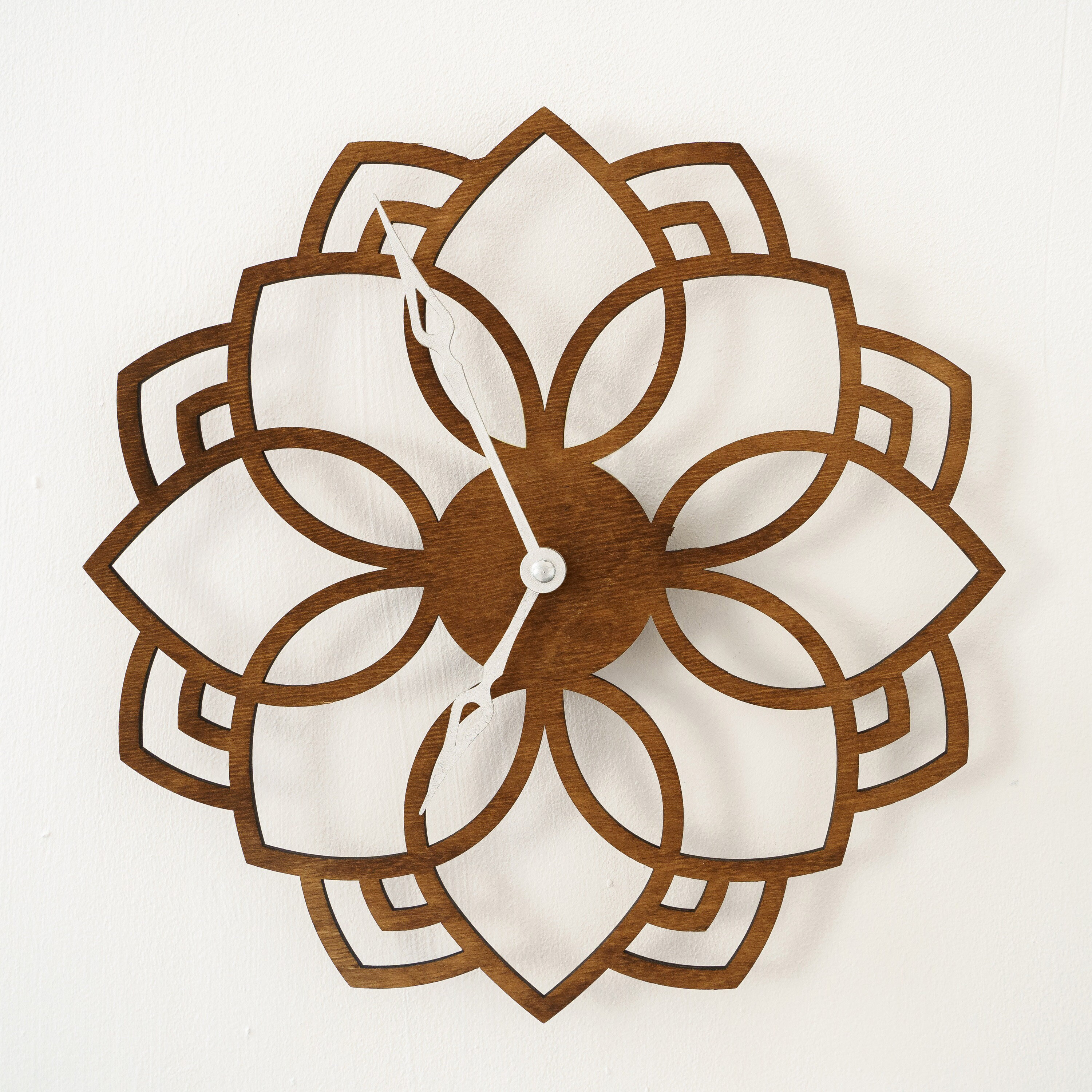 Mandala wall clock, Lotus wall clock, Silent wall clock wood, Flowe...