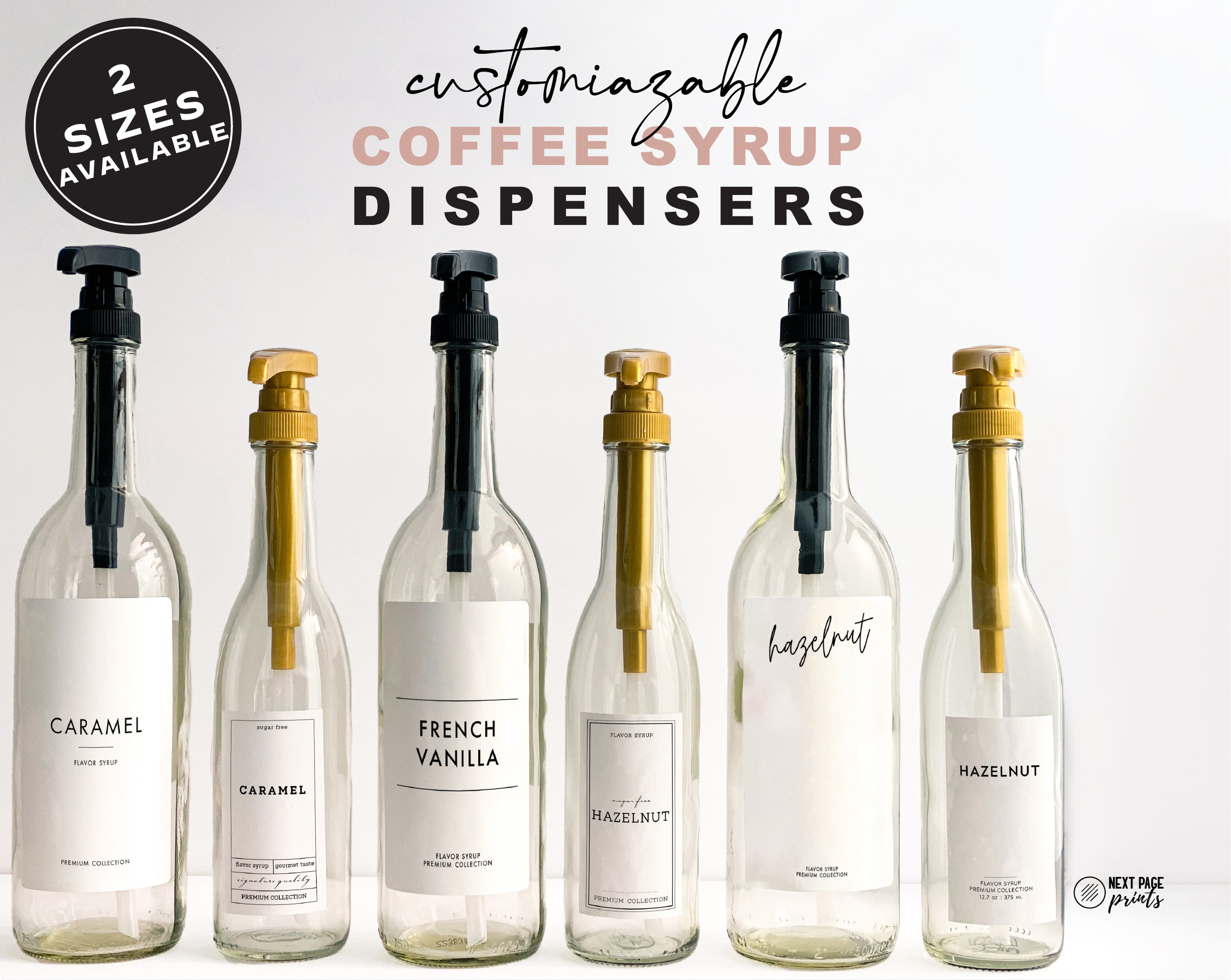 375mL or 750mL Coffee Syrup Pump Bottle Dispenser + Custom Label * ...
