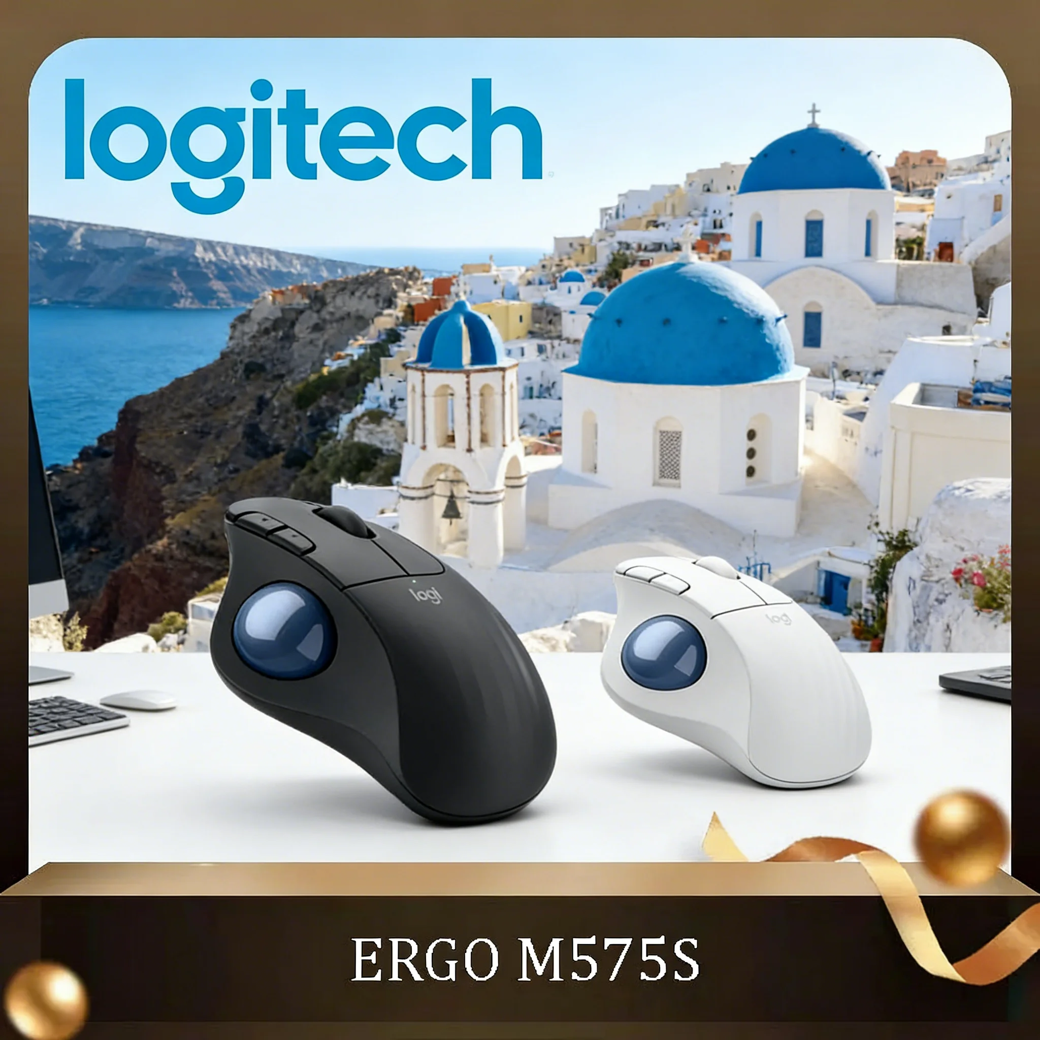 Logitech ERGO M575S Wireless Trackball Mouse - Ergonomic Bluetooth USB Dual-Mode Silent for CAD Prec...