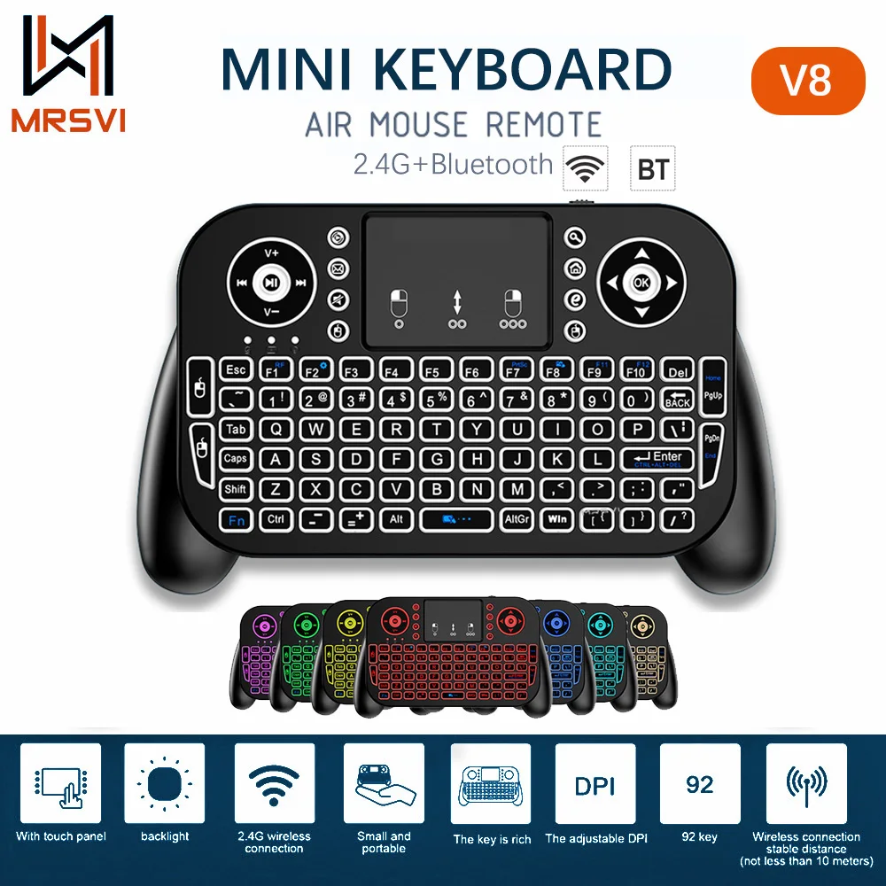 MRSVI V8 7-Color Backlit Mini Keyboard with Touchpad, 2.4G/Bluetoot...