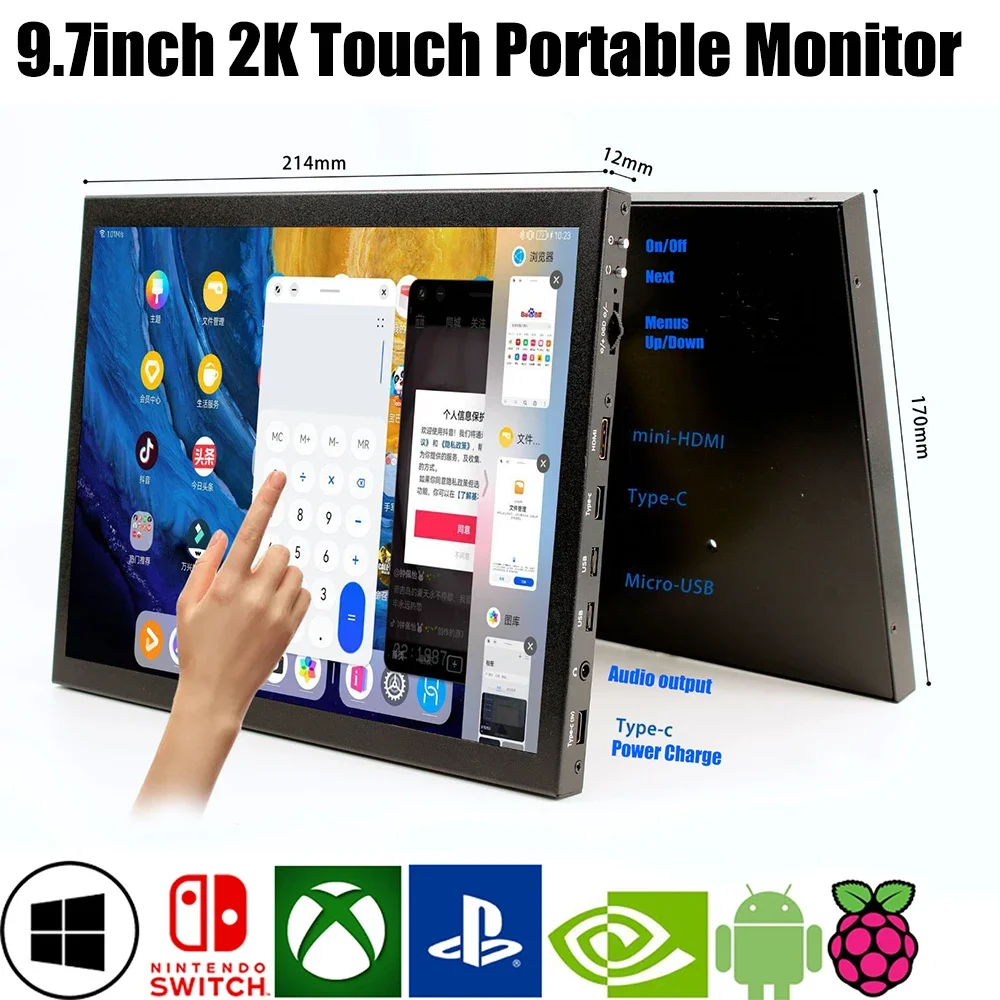 9.7 Inch 2K Touch Screen HDMI-compatible LCD for Raspberry Pi Orange Pi Windows PC Display with Cort...