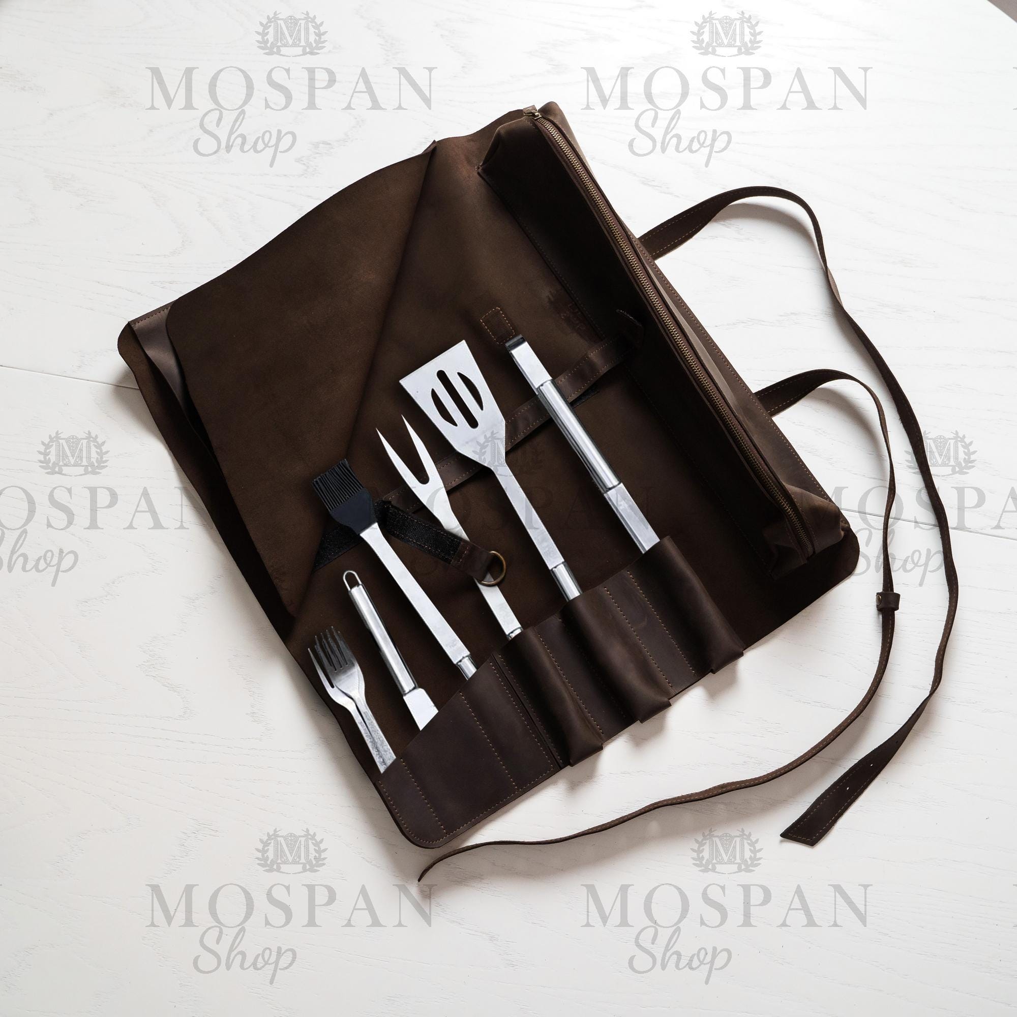 BBQ leather bag, Bbq gifts for men, Bbq tools holder, Gift for chef...