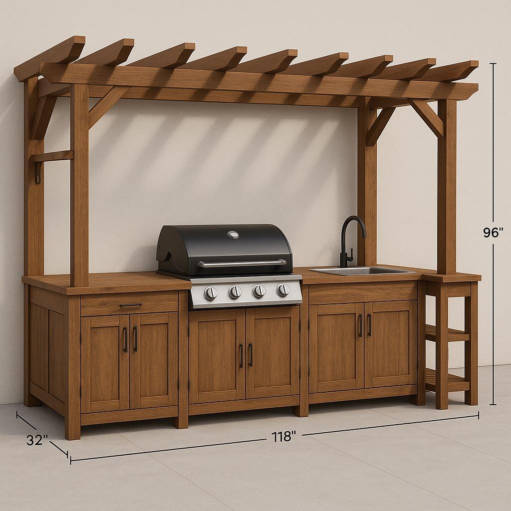 Build the ultimate backyard centerpiece with this Outdoor Kitchen BBQ Station woodworking plan. Perf...