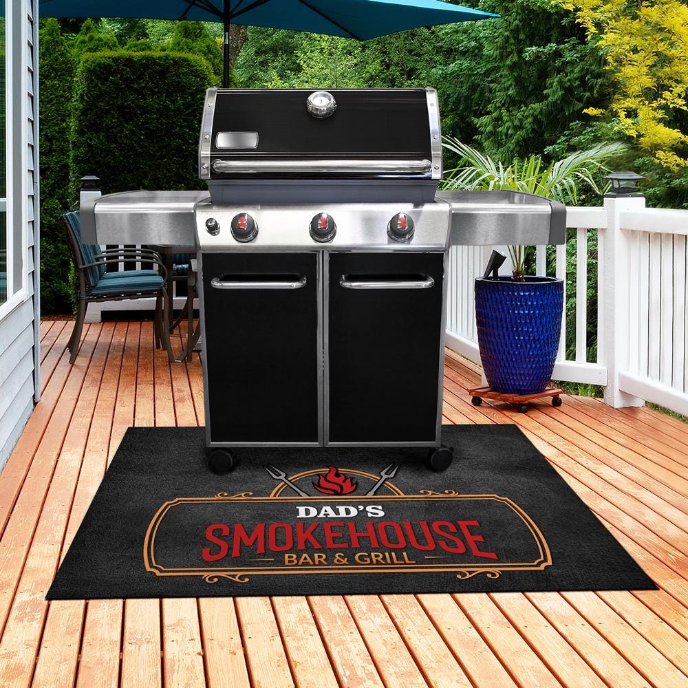 Dad's SmokeHouse Bar Grill Mat Personalized, Barbecue Mat BBQ Mat F...
