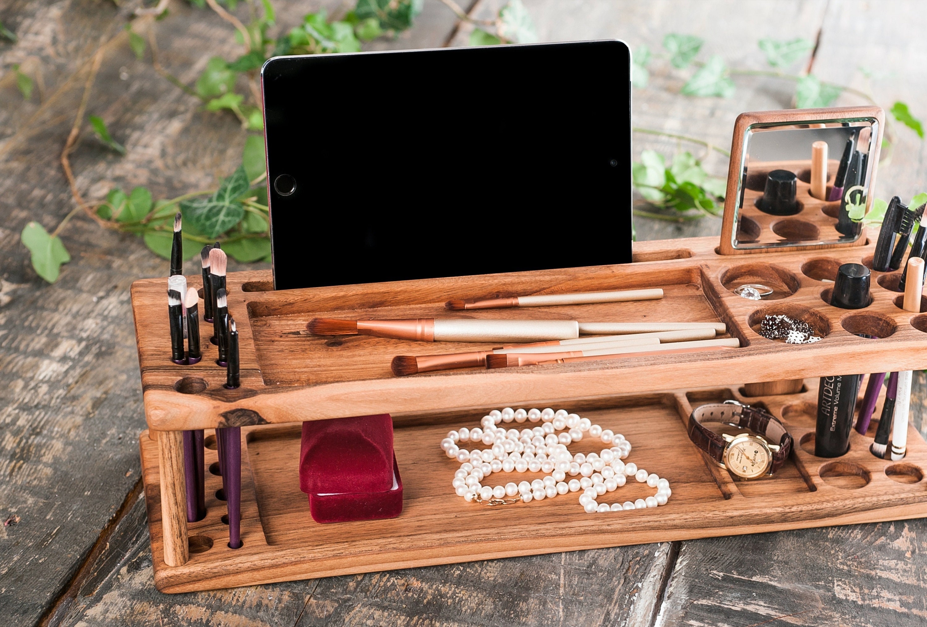 Makeup organizer wood,Wooden makeup organizer,Cosmetic organizer,Wood makeup organizer,Makeup vanity...