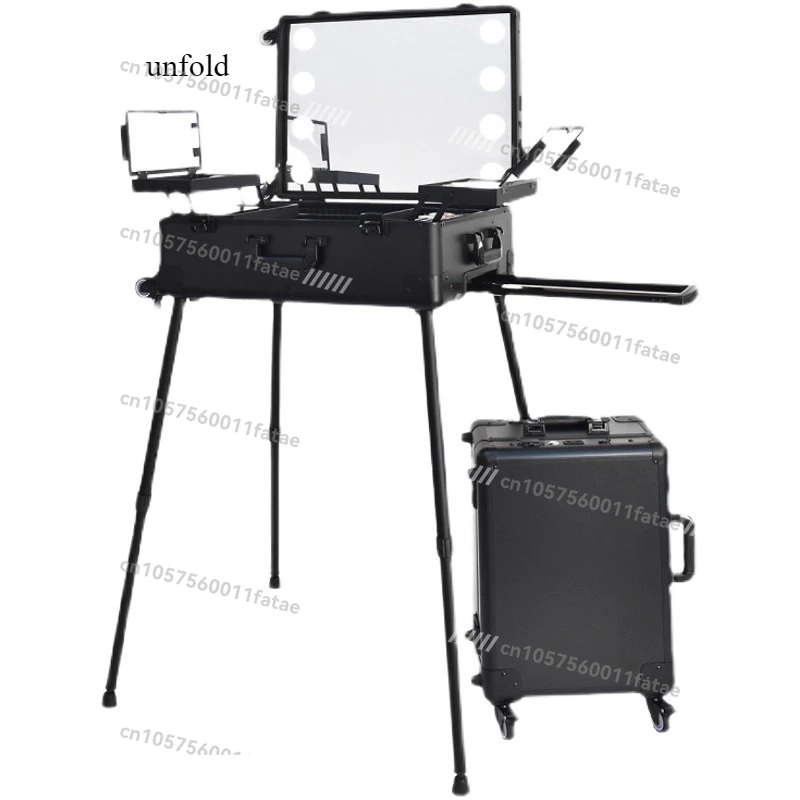 With mirror trolley with light, makeup case professional follower makeup artist