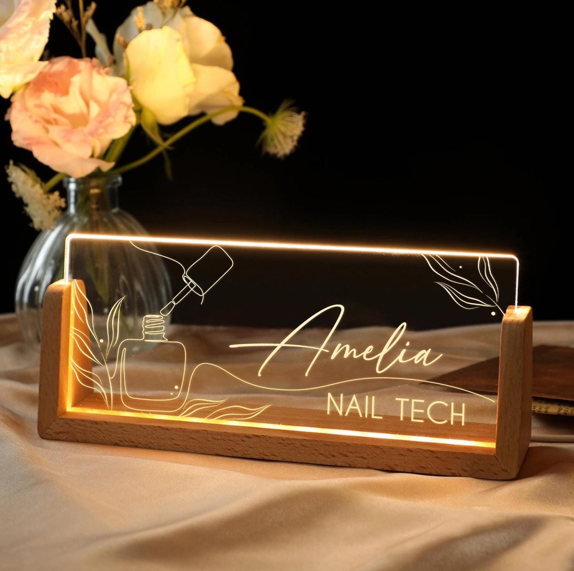 Personalized Nail Artist Desk Name Plate, Nail Tech Gift, Nail Styl...