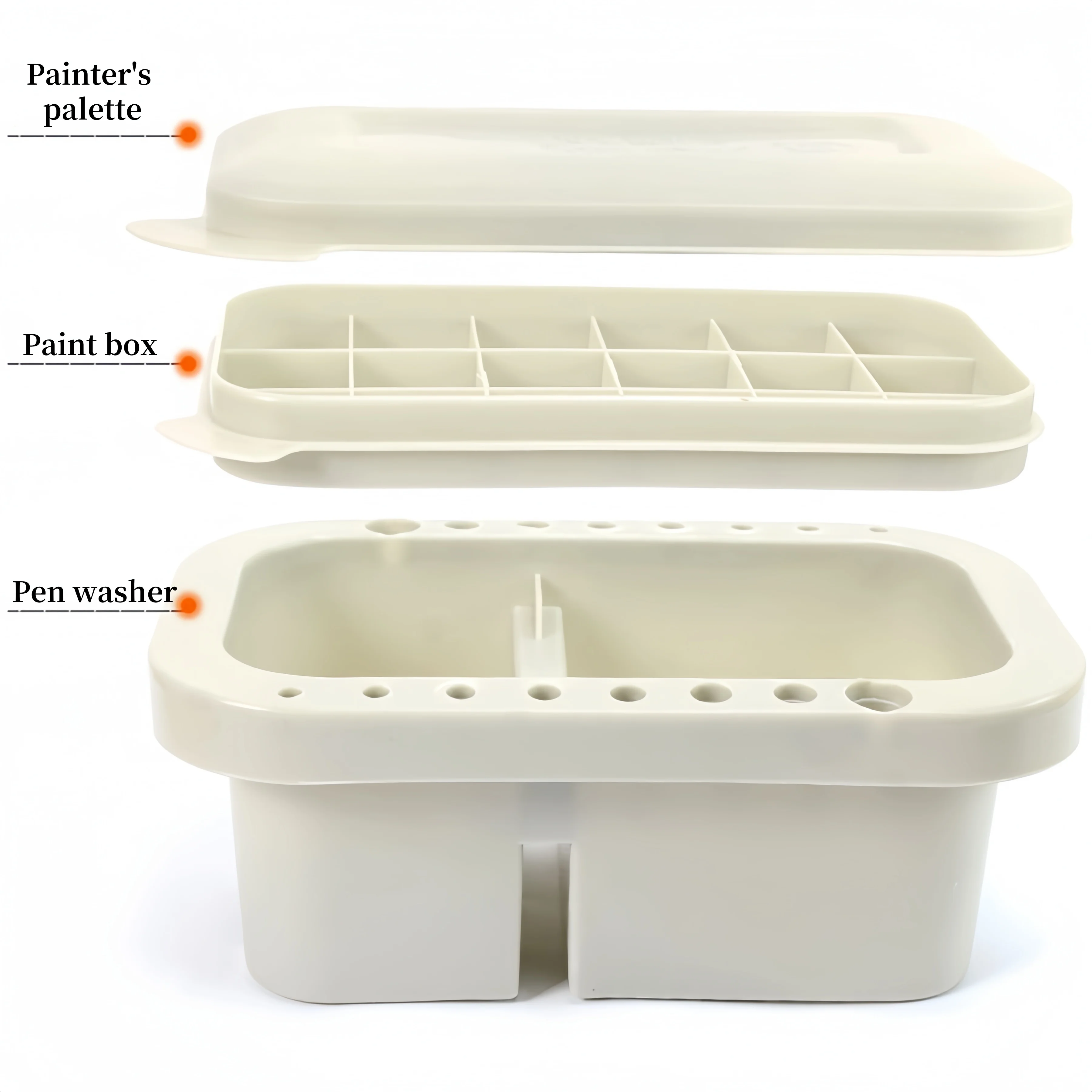 Multi-function pen wash bucket three-piece set with color palette bucket pen shaper can be illustrat...